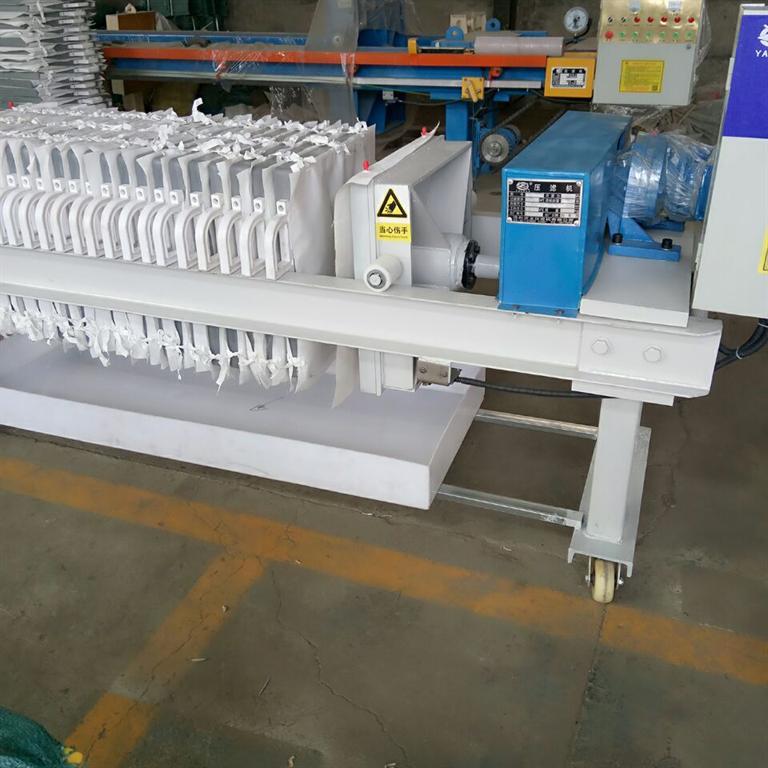 設(shè)備硬件,除了過濾室有點(diǎn)特殊之外,其余的一般都可以正常運(yùn)行,唯獨(dú)過濾室,它是由一塊一塊分開的濾板和濾布有機(jī)排列,同時(shí)在足夠大的壓力作用下,形成過濾室,而且還要形成一個(gè)能承受反作用力的密閉空間。廂式壓濾機(jī)濾室有一塊平板濾板和一塊中空的濾框組成,濾布固定在板框上的,這是早期主要壓濾機(jī)形式,而廂式壓濾機(jī)的濾室是由相鄰兩塊凹陷的濾板構(gòu)成,主要優(yōu)點(diǎn)是_換濾布方便,缺點(diǎn)是效率低、過濾效果不好、濾板容易壞。板框式壓濾機(jī)交替排列的濾板和濾框構(gòu)成一組濾室。濾板的表面有溝槽,其凸出部位用以支撐濾布。濾框和濾板的邊角上有通孔,組裝后構(gòu)成完整的通道,能通入懸浮液、洗滌水和引出濾液。污泥壓濾機(jī)板框壓濾機(jī)對于濾渣壓縮性大或近于不可壓縮的懸浮液都能適用。適合的懸浮液的固體顆粒濃度一般為10%以下,操作壓力一般為0.3~0.6兆帕,特殊的可達(dá)3兆帕或_高。如果過濾室形成機(jī)構(gòu)不能承受過濾液對其的反作用力,自然大量的過濾液_會從縫隙中滲漏出來,而不同全部的通過濾布出來,而沒有經(jīng)過濾布的液體,自然_不能發(fā)生固體和液體的分離,那么廂式壓濾機(jī)基本的作用_不能實(shí)現(xiàn),那__談不上設(shè)備的工作了。