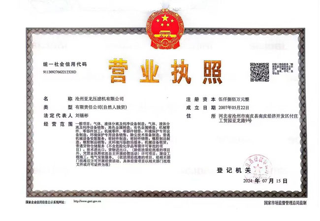 公司名稱:滄州亞龍壓濾機(jī)有限公司 公司地址:河北省南皮縣付莊工業(yè)開發(fā)區(qū) 電話:0317-8189922 傳真:0317-8189923